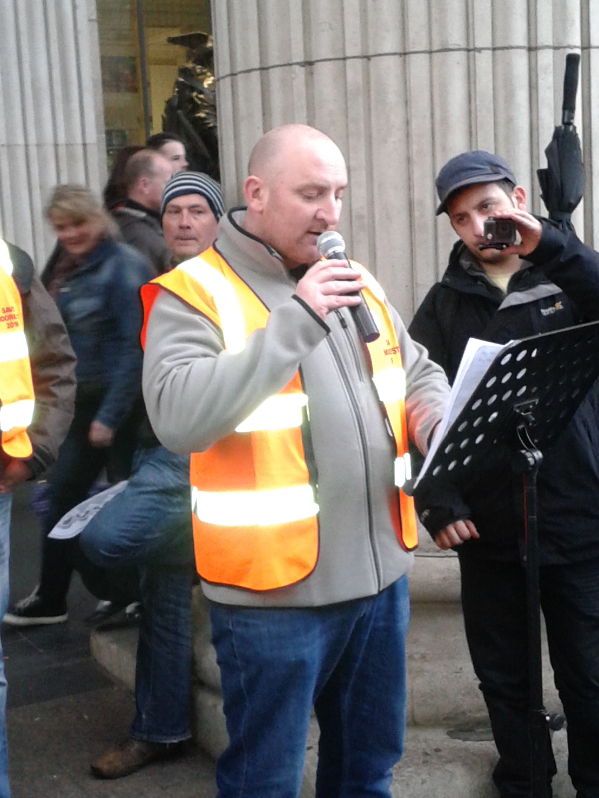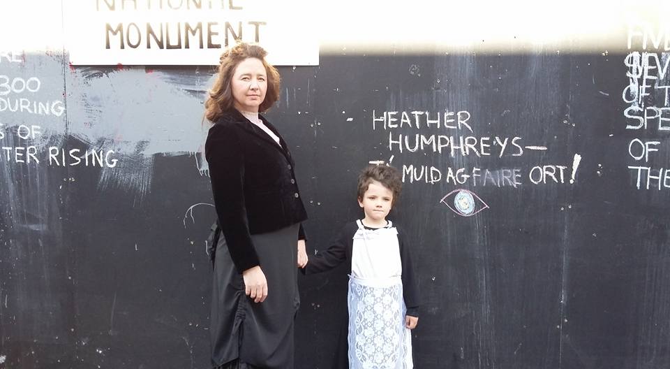 The reenactment procession turned and proceeded down towards the GPO where Niamh Mc Donald of Save Moore Street 2016 Campaign introduced Donna Cooney, great grand-niece of Elizabeth O’Farrell, to read a poem about the Rising by Theo Dorgan. Damien Farrell then spoke on behalf of the campaignd