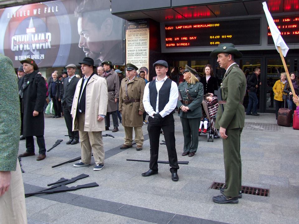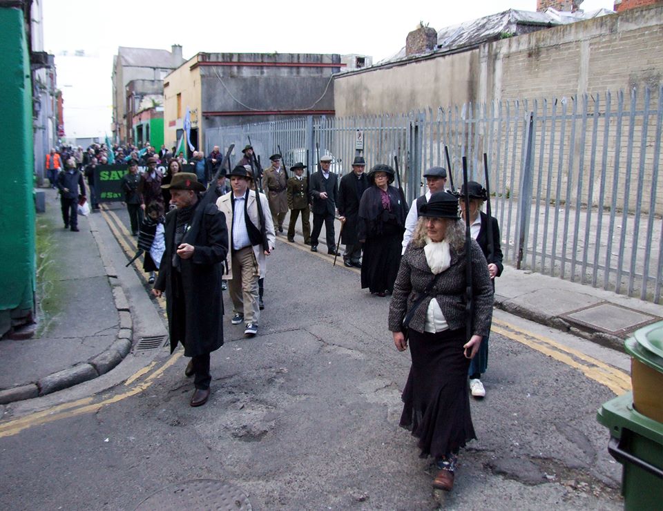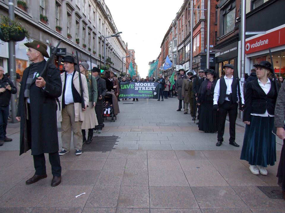 At 5pm on Friday 29th April (2016), Save Moore Street 2016 campaigners and supporters followed in the footsteps of the Easter Rising surrender. The event was in part a reenactment but aimed at an evocation rather than an exact copy of what happened around 5pm on the 29th of April, 1916.