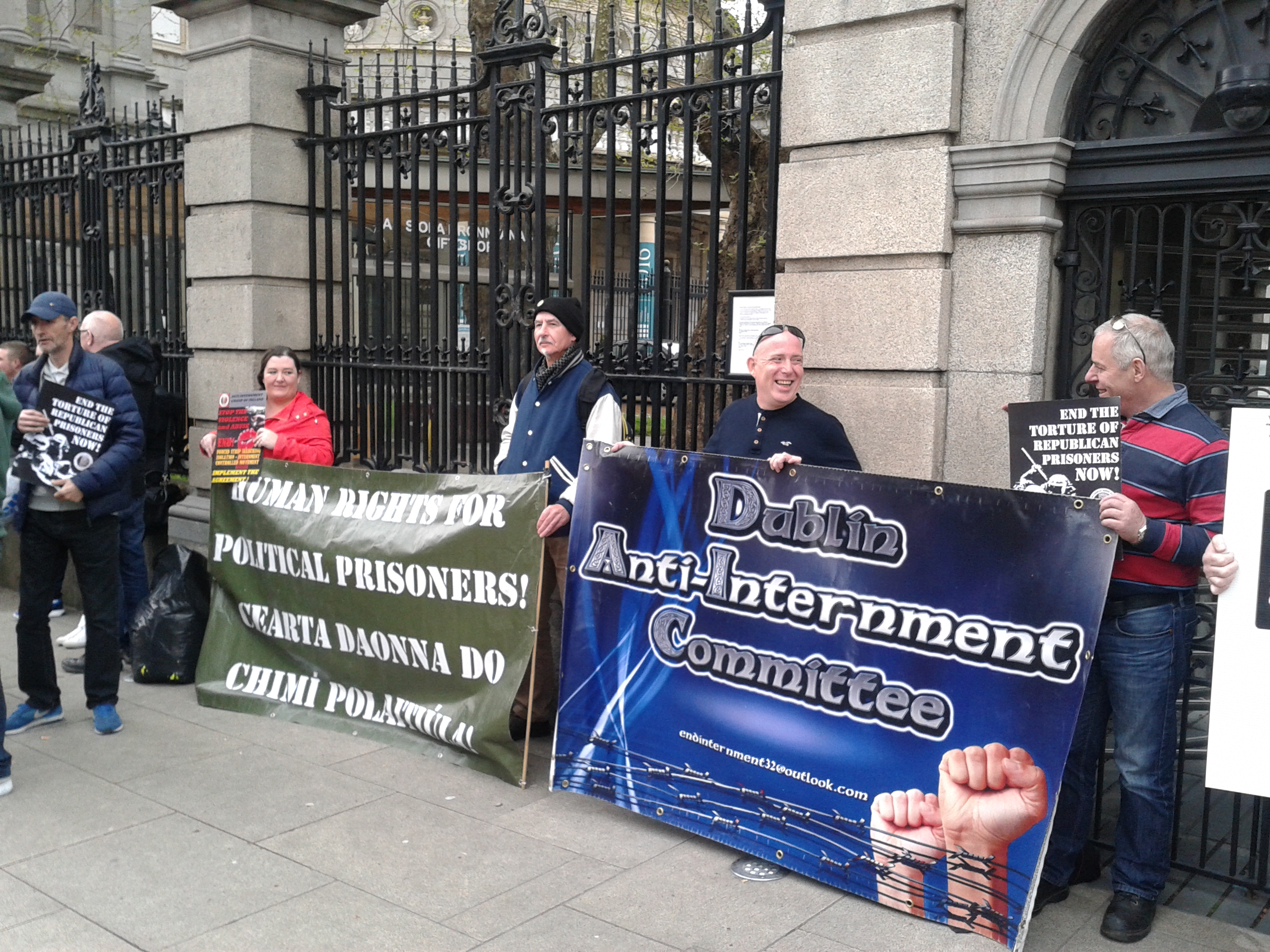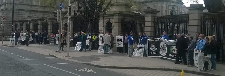 On Tuesday 10th May a large crowd picketed Leinster House, the Irish Parliament, at short notice to protest the denial of civil rights to three irish Republicans by the Police Service of Northern Ireland who detained, arrested and charged them and by the judiciary who remanded them in custody, denying them bail.