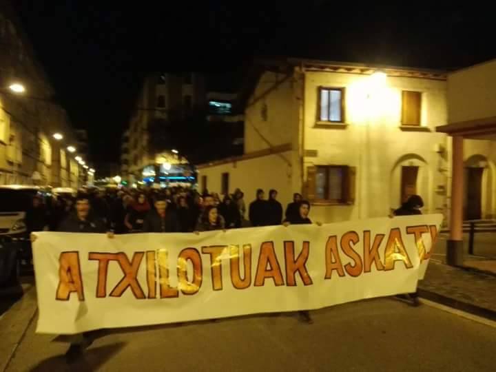 Tonight in Altsasu, Basque youth took to the streets in peaceful but militant protest demonstration (see photo).