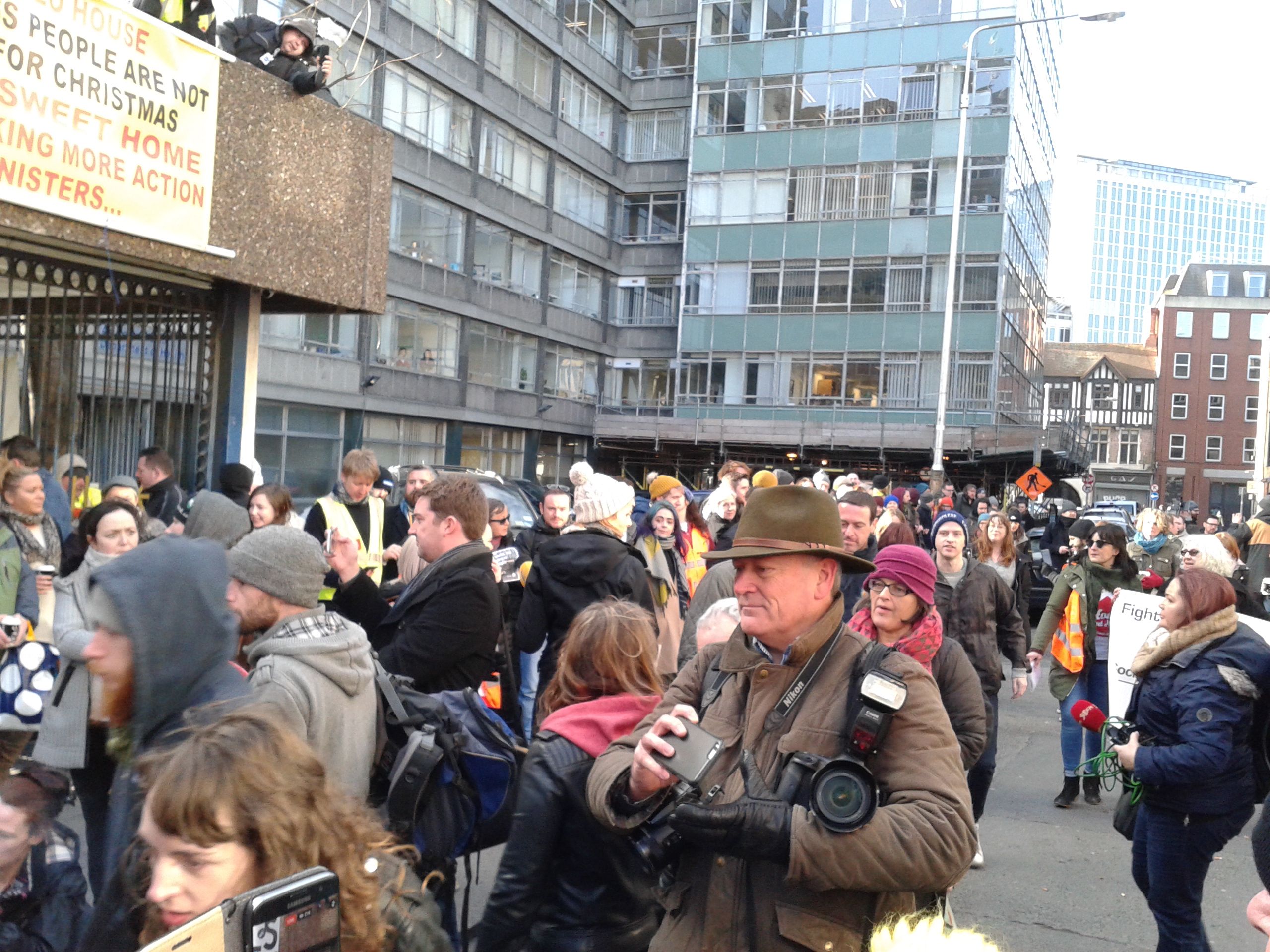 HUNDREDS ATTENDED AT APOLLO HOUSE in bitter cold from late morning today to indicate their support for the homeless people and housing activists in occupation of the building. At the same time, a court refused to extend the
