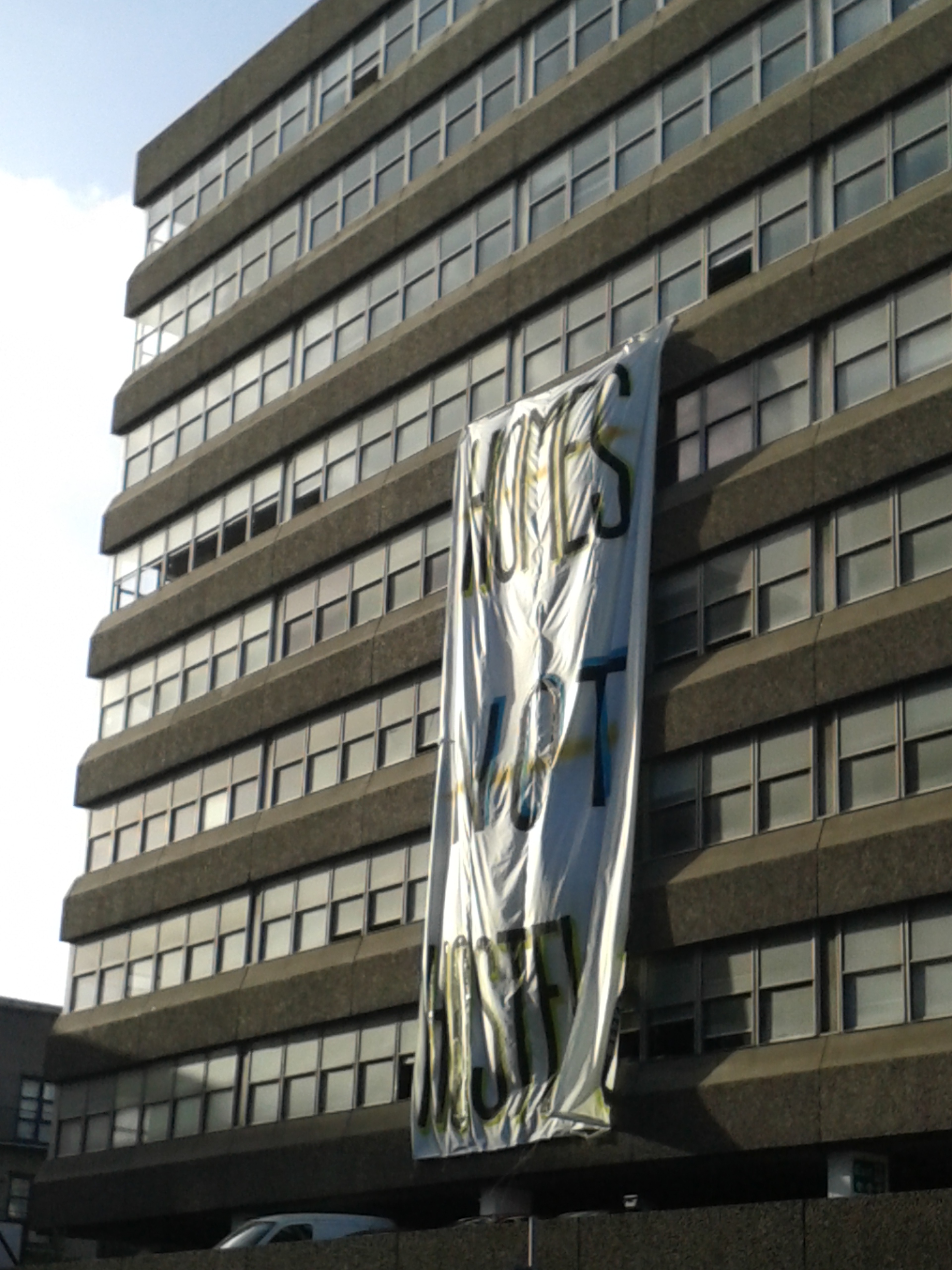 Since December 15th, the Home Sweet Home coalition of activists and homeless people has been occupying this building which state agency NAMA had repossessed from a property developer with unrepayable debts. The group is calling for NAMA to use the properties it has taken control of to house the homeless.