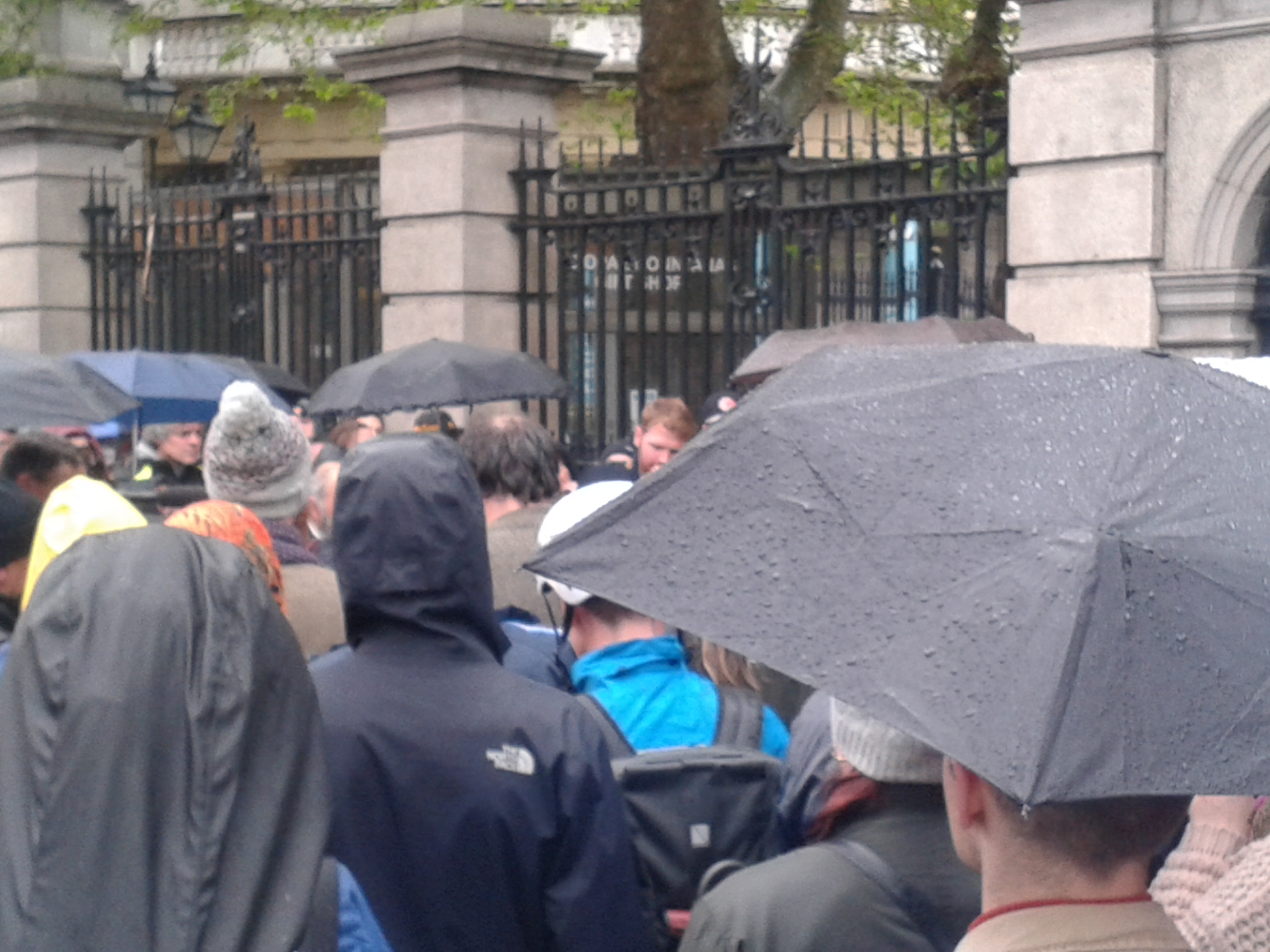 A substantial crowd gathered at a few days’ notice at 5.30pm to protest outside the Dáil at the Garda treatment of Dara Quigley, social activist and blogger.