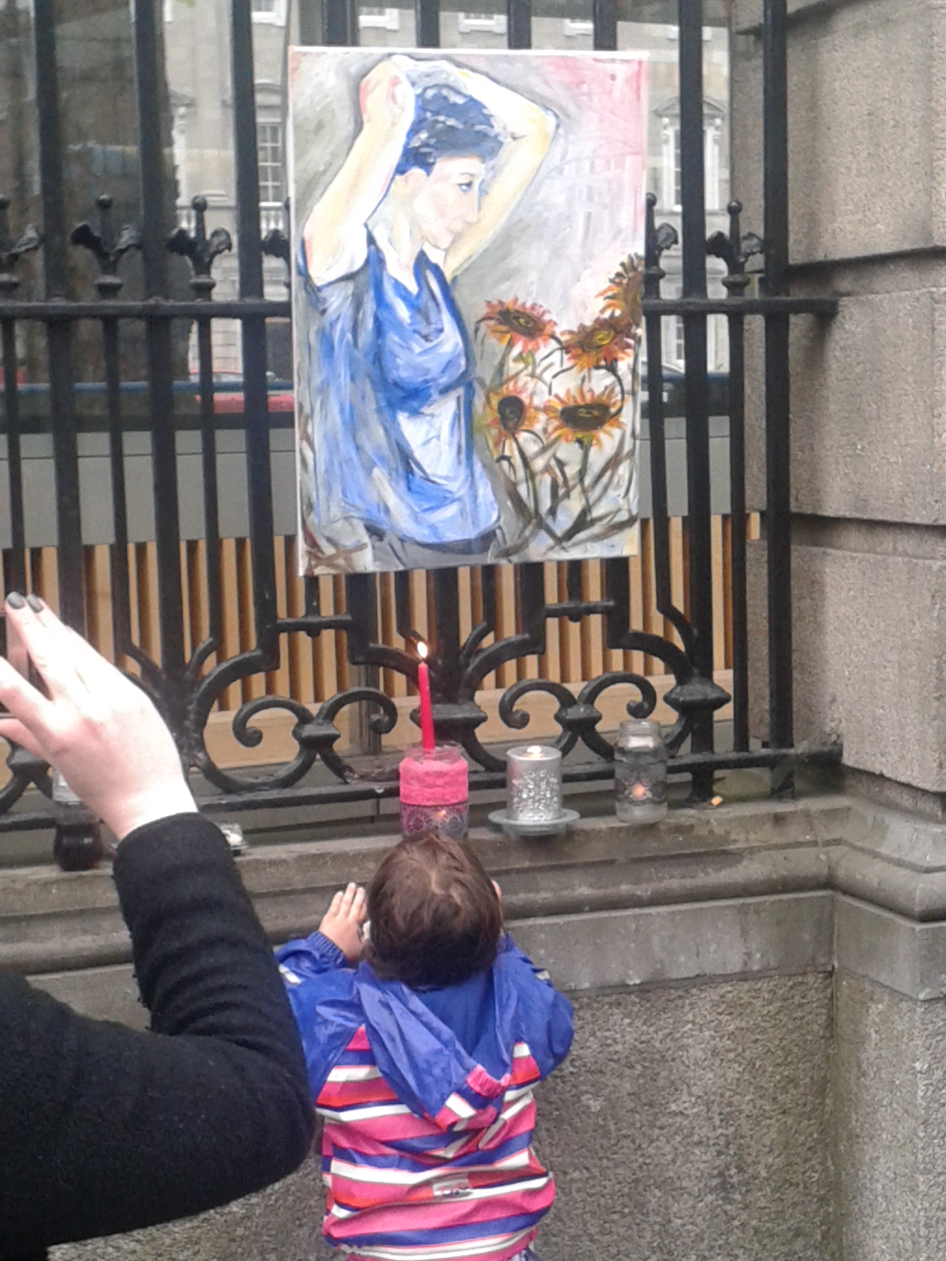 Dara’s family organised the event and a number of people spoke at it but due to what seemed inadequate public address system and noise of passing traffic, many could not hear what was being said. According to a press report, Dara Quigley was remembered as “a strong and intelligent woman” at a vigil outside Leinster House on Friday evening. Ms Quigley’s brother Seán told a congregation of about 100 people on Kildare Street that his sister had opened the world to him.