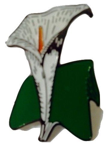The Calla Lily (Zantedeschia aethiopica), which the paper badge image came mostly closely to represent.