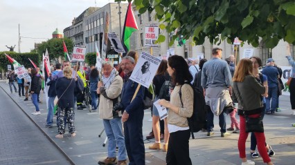 Calling on all present to stay in touch with the IPSC or with other Palestine solidarity organisation, Martin Quigley brought the event to an end by leading the rally in leading a number of chants: “From the river to the sea, Palestine will be free!” “Free, free Palestine!” “One, two, three, four – occupation no more!” “Five, six, seven, eight – Israel is a fascist state!”