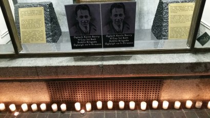 Socialists and Socialist Republicans gathered outside the General Post Office in Dublin on Thursday (Nov 1st) to honour the memory of Volunteer Kevin Barry on the 98th anniversary of his execution. Copies of his portrait were on display with candles lit and the ballad honouring his memory was sung.