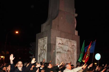 The Falange began with their traditional march of homage to Rivera (yes, the fascist Falange have “traditional” public events in the Spanish state), leaving Madrid around 9pm on Friday night to arrive at the Valley on Saturday morning.