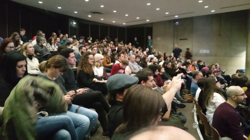 Section of audience waiting to back left of the auditorium in Trinity College, Dublin (Photo: D.Breatnach)