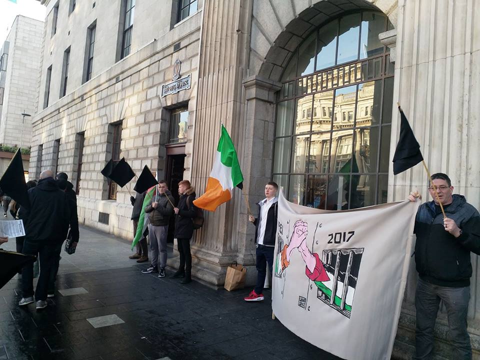 On a cold and wet late Saturday afternoon (2/03/2019) in Dublin city’s main thoroughfare, O’Connel Street, hurrying shoppers and tourists were treated to the sight of protesters outside the General Post Office. One group was flying small flags of a green, white and orange tricolour but not the Irish one – the colour bands were horizontal.