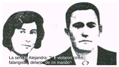 Alejandra sigue con su relato: “..A mi me hicieron muchas, a otras las violaron..A mi me violaron 5 falangistas, sacaron de la cama a mi marido, que en paz descanse, el pobre, y le plantaron una pistola en el pecho, y allí, delante de él, me violaron. Unos me tenían cogida por los brazos y otros, por las piernas, y aquí Santa Inés, a lo que quieran hacer, y las pistolas encima de la cama en presencia de mi Desiderio ¡El pobre Desiderio! Además nos robaron todo lo que pudieron..Si, si, eran de aquí, de Cantalpino. Por desgracia, esta violación no fue un hecho aislado. En Poveda de las Cintas, a pocos kilómetros de Cantalpino, la historia se repitió, esta vez con la mujer del secretario del ayuntamiento..”