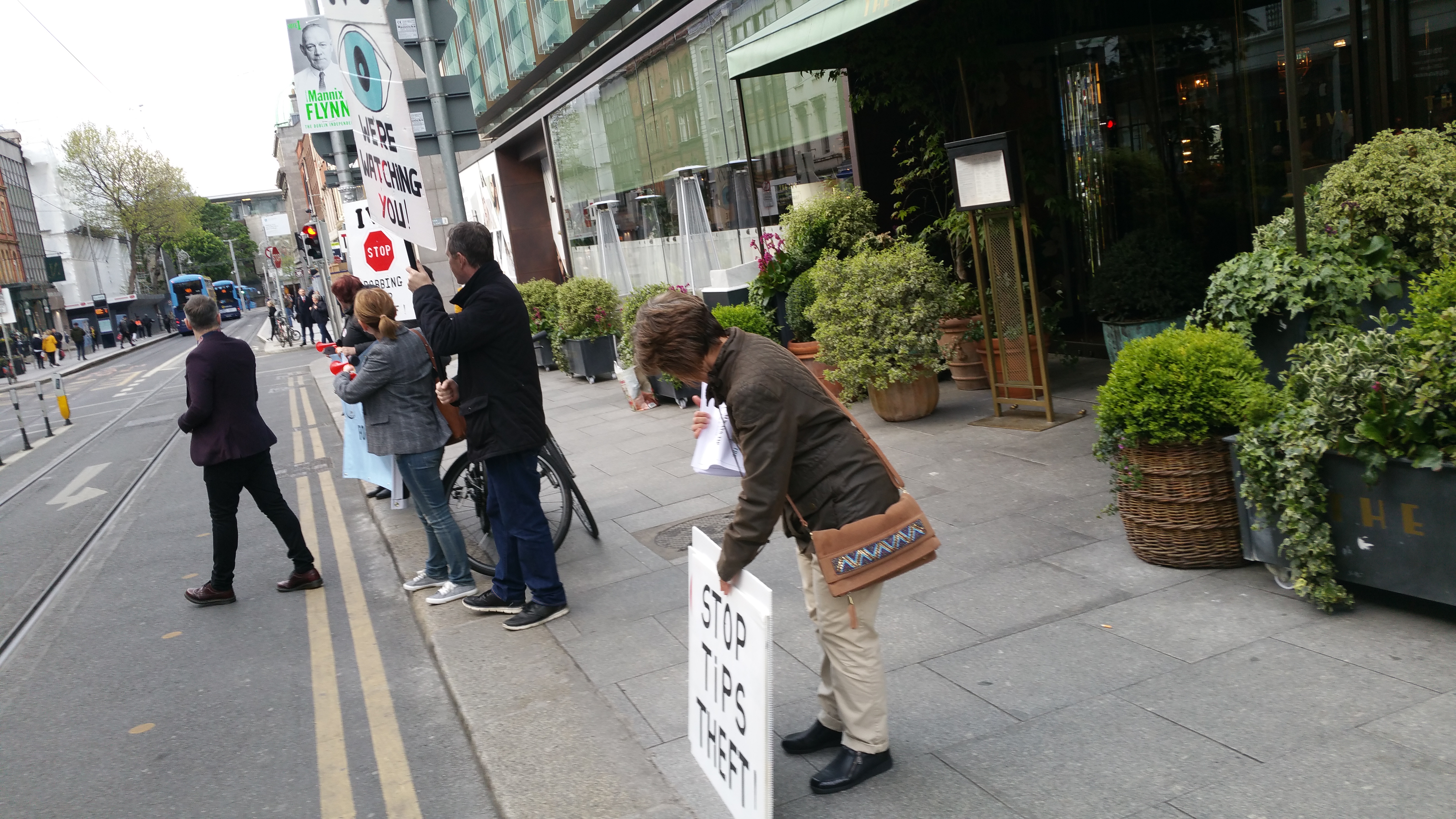 Link to Irish Times article (and photo): https://www.irishtimes.com/life-and-style/food-and-drink/protest-held-outside-ivy-restaurant-in-dublin-over-waiters-tips-1.3827055