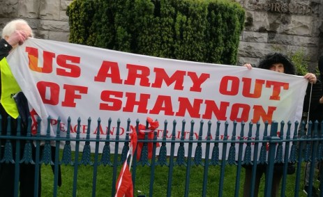 There were protests in various parts of the country, including one to greet his arrival at Shannon airport (hopefully US munitions and troop carriers were pulled to one side so as not to hinder his landing). The Irish Times said there were about 200 protesters there so, on past reporting, there could have been anything between 300 and 1,000. It is not easy to get to Shannon airport unless one has a car, even from Galway the gaps between bus arrival times are substantial. And no train station.
