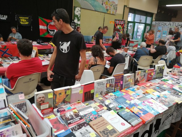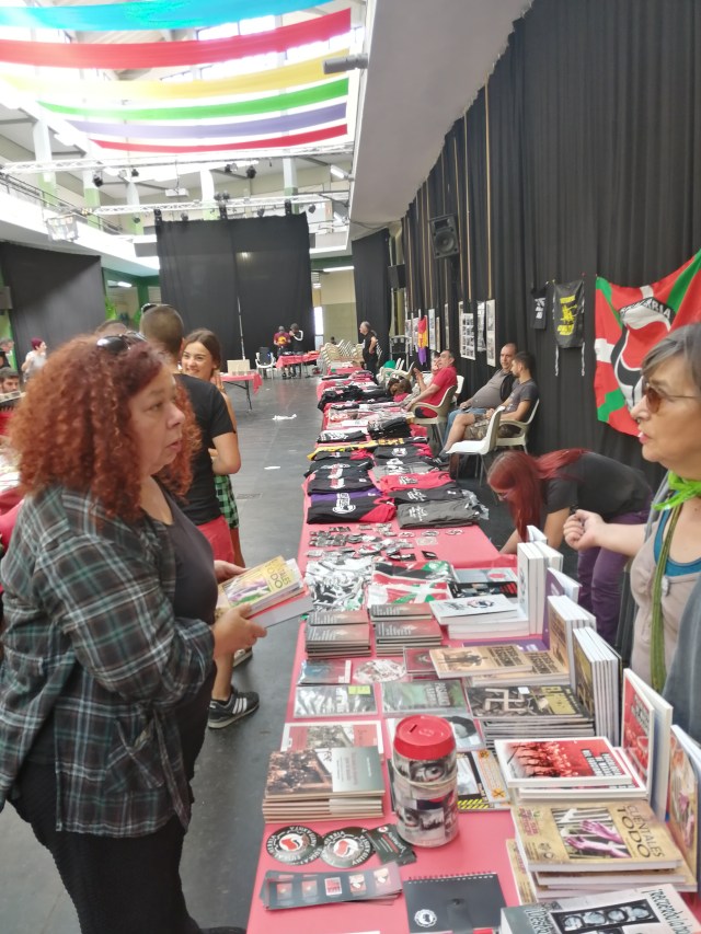 The event came to an end and people moved off for lunch in various bars, or to chat or to browse the bookstalls. The latter were run by a number of organisations: Inugorria Liburodenda (Gernika revolutionary and progressive bookshop), Sare Antifaxista; CNT, Mujeres Libres, IPEs, Baskale, FAI, DDT Banaketak, Periko Solabarria Elkartea, Komite Internazionalistak, Jazz Oi!, Templando el acero, Amnistía Ta Askatasuna, SRI.