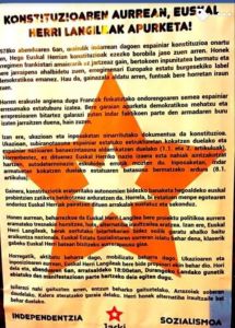 For all those reasons we call for the organisation and mobilisation against the imposition, in which the Basque working-class population should follow its own path. Because of all that, we call for participation in the demonstration to take place on 6th December (Spanish Constitution Day) in Durango.