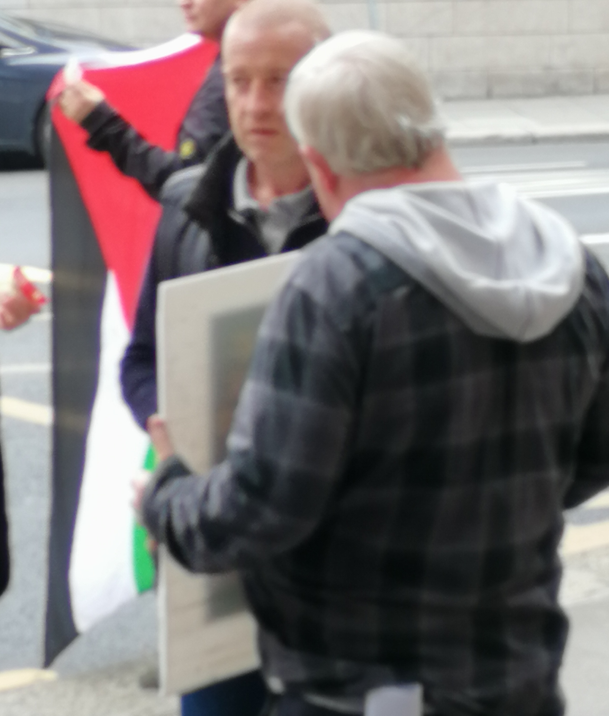 The secret political police were again very much in evidence at the second political prisoner solidarity picket on Saturday. Organised by the Irish Republican organisation Saoradh, it began at 3pm and soon collected a half-dozen of these gentlemen who proceeded to demand names and addresses from all present. Unable or unwilling to state which crime they suspected the picketers were committing or about to commit ensured that in the case of a couple of strong-willed individuals who understood the provisions of the quoted Act, the ‘Branch officer was unsuccessful. In a couple of other cases their inability to question in the Irish language left them also without success when confronted with some who were fluent and insisted upon their Constitutional right to have the whole exchange conducted “i nGaeilge”. Some of those problems the ‘Branch had encountered before with the picketers in O’Connell Street and on O’Connell Bridge.