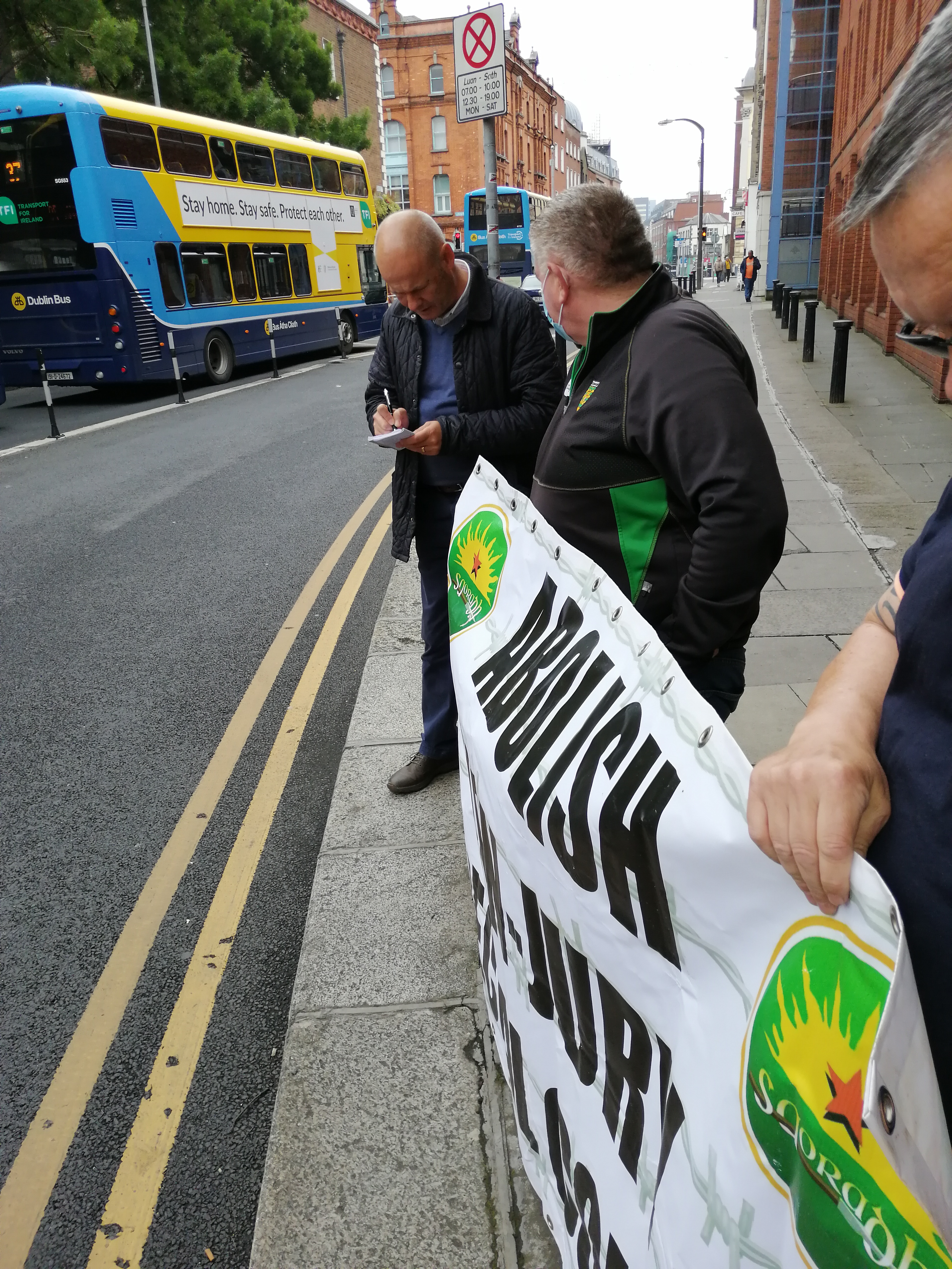During a number of those pickets, participants were approached by plainclothes Gardaí, of the political surveillance section colloquially known as “the Special Branch” and required to give their names and addresses. Although the Special Powers Act does give the Gardaí quite extensive powers to question and even detain suspects, they are supposed to have a reasonable suspicion that the suspects are committing – or about to commit — a crime. It is hard to imagine in this case that such reasonable suspicion existed in the minds of these Gardaí and much easier to believe that the purpose is a cross between intimidation and amassing files on people who are carrying out a peaceful protest and breaking no law. Meanwhile a vocal group of far-Right people demonstrating against pandemic restrictions have been staging protests in front of the GPO, reportedly without any interference by the Special Branch. A number of participants commented that the Irish Council for Civil Liberty should be doing something about this abuse of Garda powers.