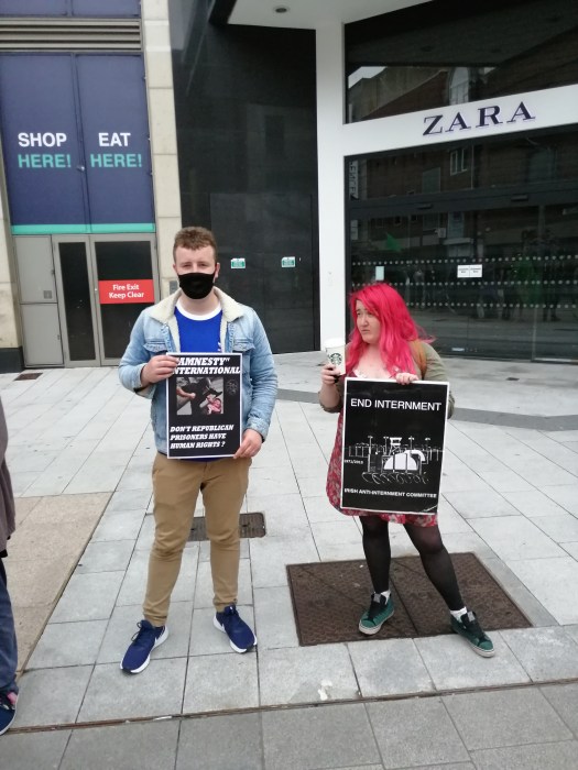 The monthly picket of the Dublin Anti-Internment Committee on Saturday attracted broad support across the spectrum from Irish Republican to Anarchist and revolutionary Socialist. Shoppers and passers-by on Dublin’s busy Henry Street observed the picket with interest, some stopping to engage the picketers in discussion. Several hundred leaflets were distributed explaining that, albeit under another name, internment without trial continues in Ireland on both sides of the British Border.