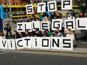 Since the eviction, the online Journal.ie published a report in which the Gardaí were quoted in what can only be seen as poor excuses and outright lies, including a claim that there had been no damage! The Irish Council for Civil Liberties has queried the role of the Gardaí and some TDs, including Green Party members of the Government have called for a ban on evictions during the Covid19 pandemic (the previous ban on evictions was very recently lifted by the Government). As is being increasingly the case, the property in question appears to have been acquired from the landlord by a vulture company (i.e finance companies that buy properties in debt from mortgage banks at low cost, to either sell them on again or to evict the tenants and sell the properties).