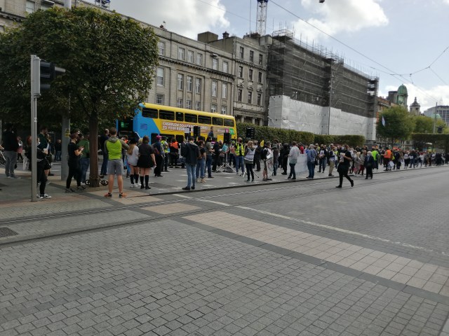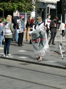 Across on the other side of the road, at the corner with Princes Street, two or three older people had set up a couple of banners protesting about ill-treatment of the elderly in nursing homes — an entirely justified cause for protest however it is known to have been adopted by the Far-Right in Ireland. A very high proportion of Covid19 deaths in Ireland were in nursing homes and linked to Covid19 infection through lack of effective controls, which is a strange issue for the Far-Right to embrace since they variously claim that Covid19 is a hoax or that it is not at all a serious virus.