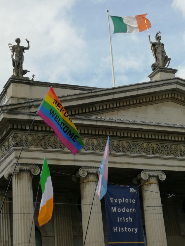 The “Irish Republic” flag was prepared in the home of Constance Markievicz for display in the 1916 Rising; she was a Socialist Republican and fought in the Rising as an officer in the Irish Citizen Army, the first working class army in the world.