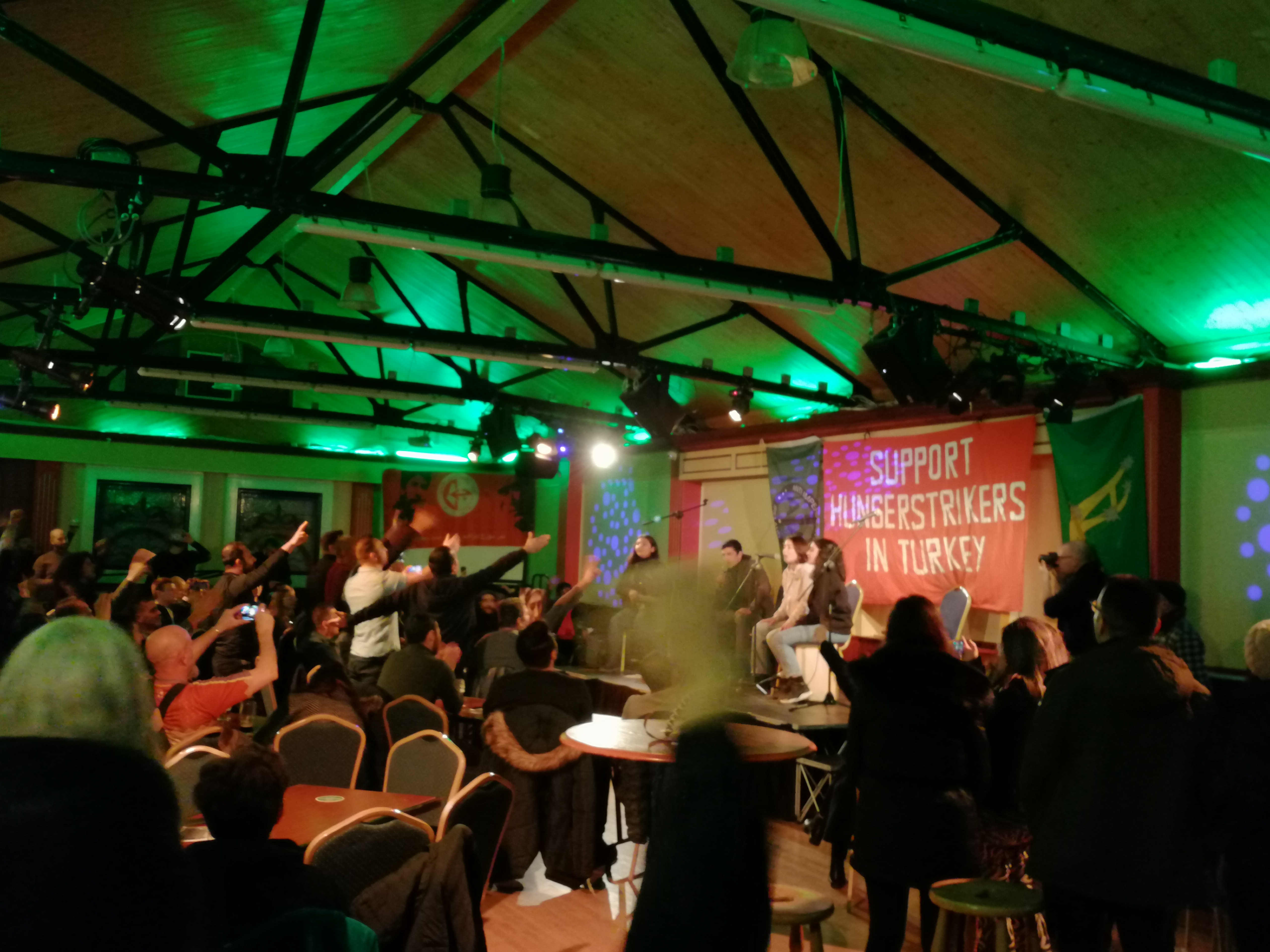 In Belfast in the Sunflower Lounge, Bobby Fields from Armagh and Séan Óg from Dublin entertained those in attendance with songs of Irish resistance followed by Grup Yorum coming on afterwards. The Grup’s performance was enthusiastically received and was followed by a questions-and-answers session to learn more about the situation in Turkey.