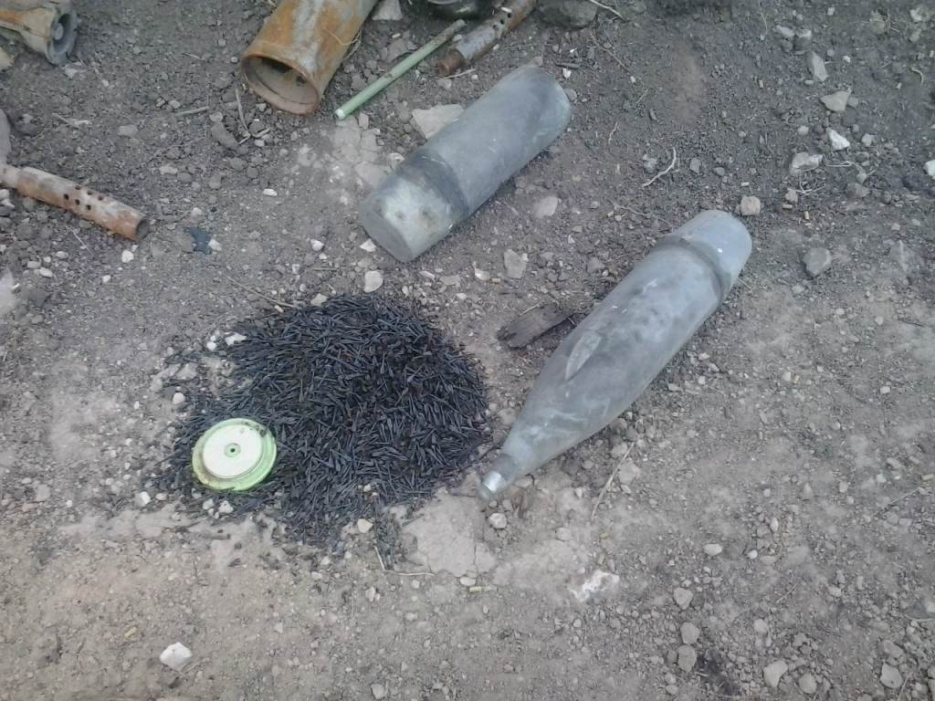 Remains of flechette-delivery shell cases in Ukrainian bombardment of the Duhansk People’s Republic (seceded from Ukraine in 2014 and attacked by Ukrainian military since).