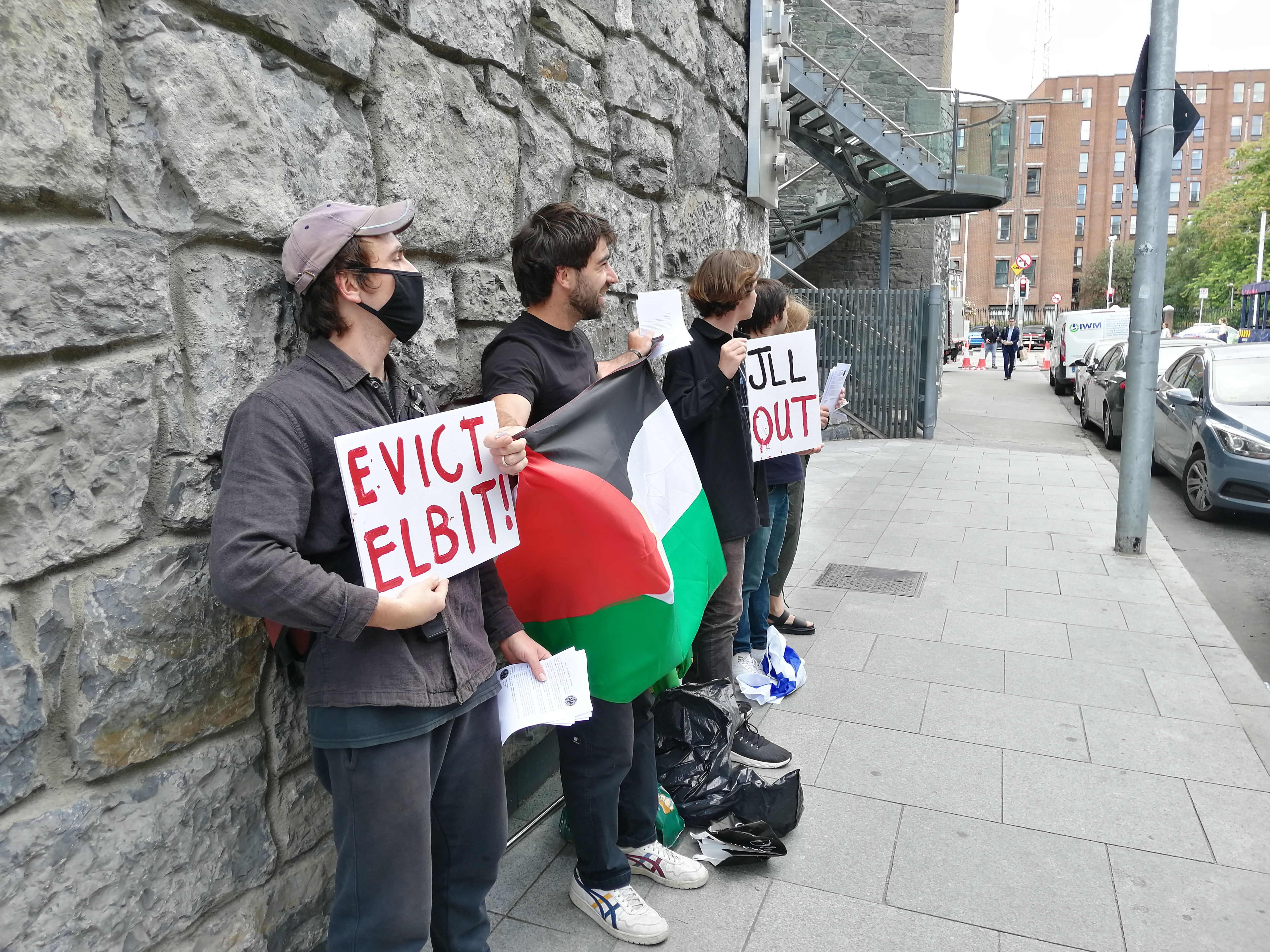 Gardaí (Irish police) arrived to protect the JLL building but there were no incidents. The reaction of those who accepted a leaflet varied from non-committal, through curious to supportive.
