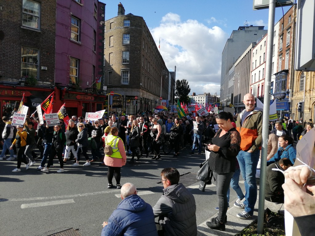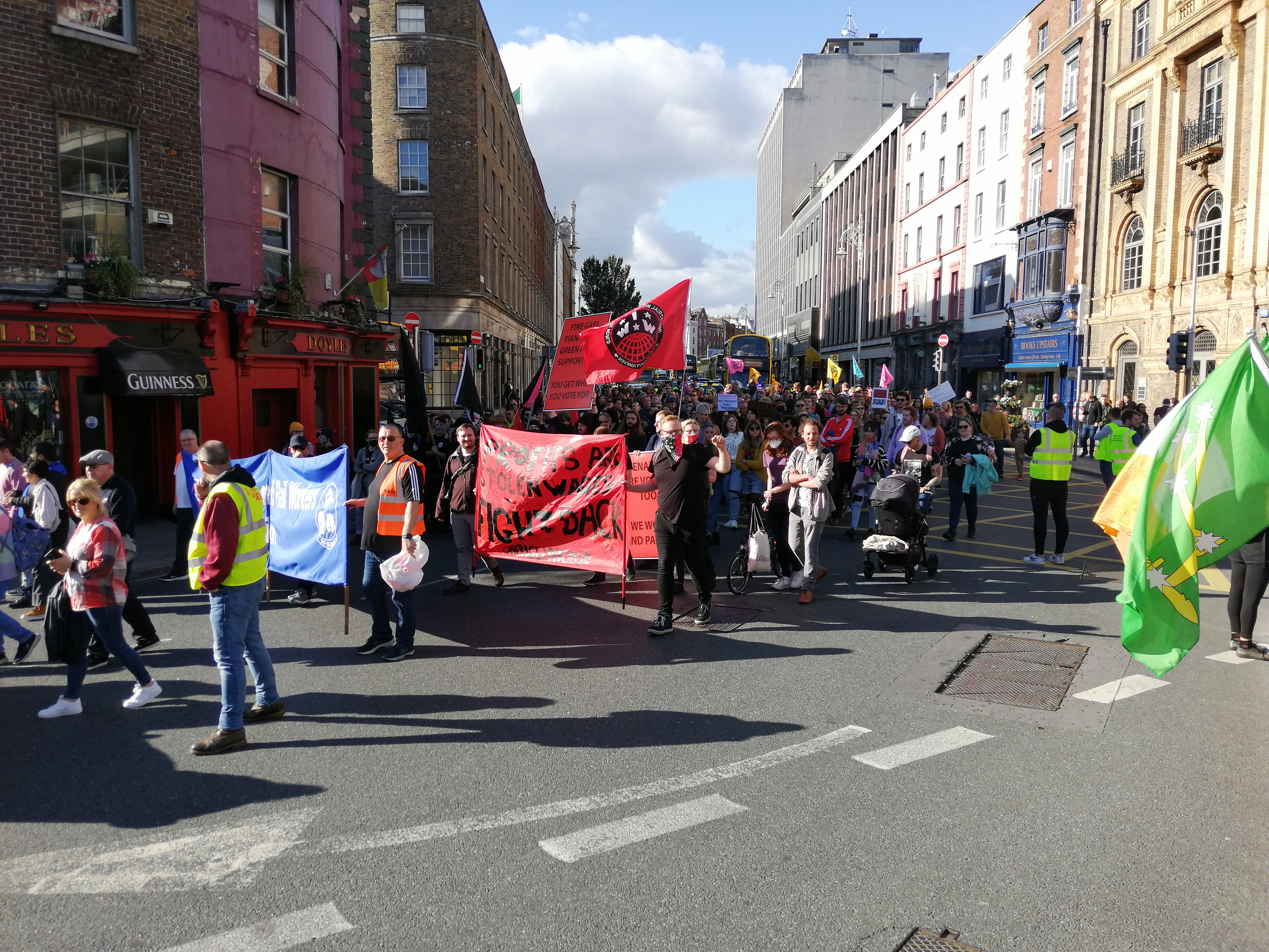The main Dublin march was organised by the Cost of Living Coalition of 30 organisations, including People Before Profit but also Sinn Féin, which is on a clear trajectory to enter Government in the near future but in coalition with traditional neo-liberal capitalist political parties.