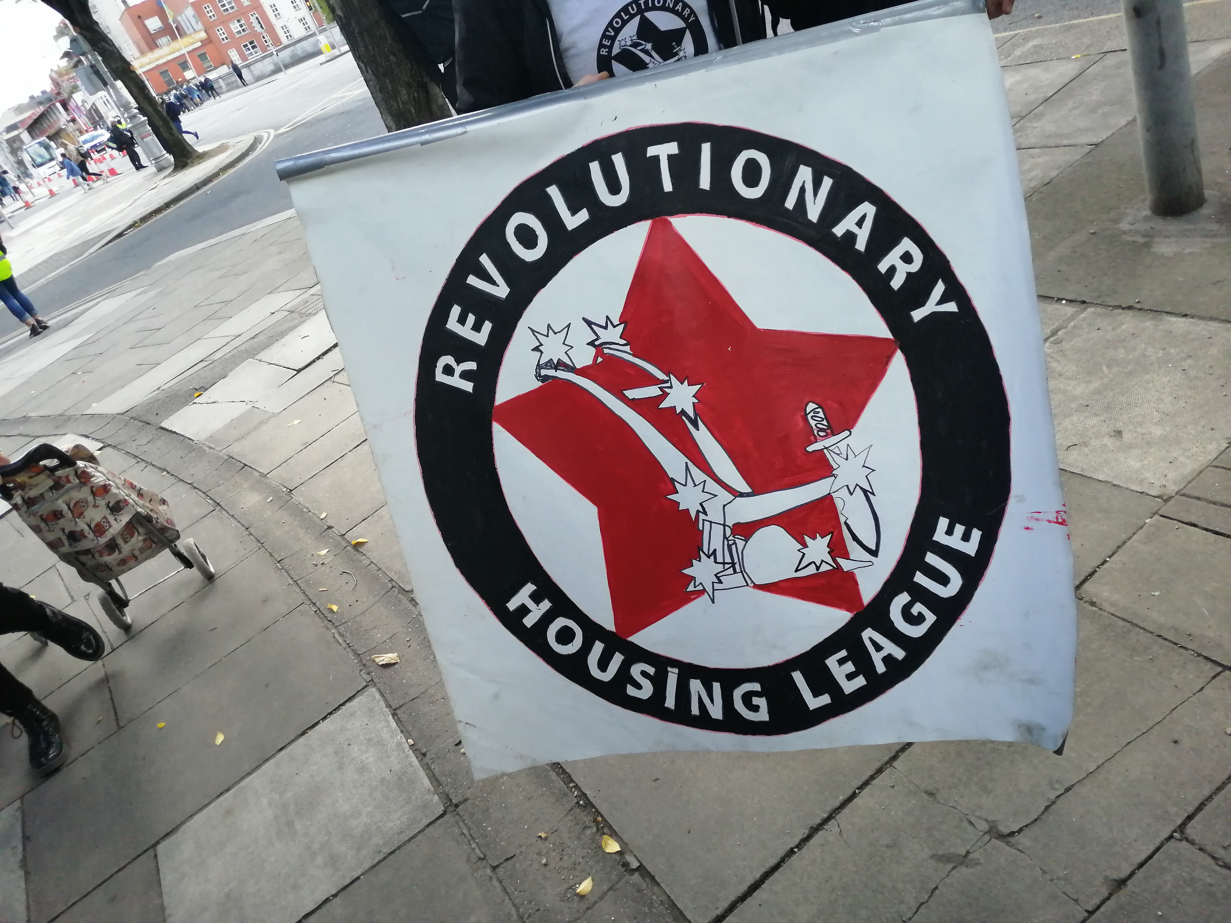 The assembled then set off in two lines along Custom House Quay, across Talbot Memorial Bridge and then eastward along the quays. On the way they shouted slogans including “One, two, three, four – Housing crisis no more!” and “Only solution: Revolution!”