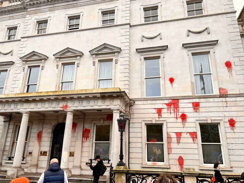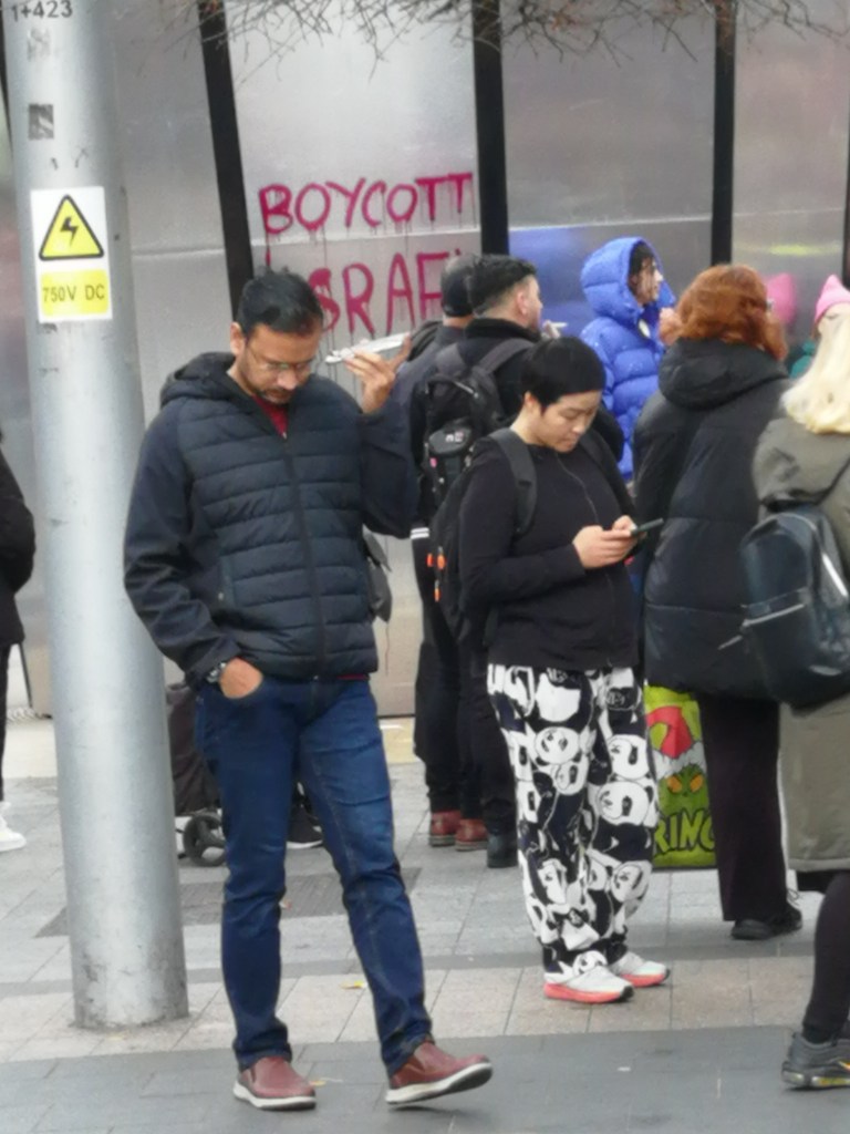 Eastward of there, many Garda vehicles could be seen in Merrion Street lower, probably in case people decided to bring to the Fine Gael party HQ their disgust at State collusion with Zionist genocide. Of course nowadays, Fianna Fáil and the Green Party HQs might feel the need for the same protection.