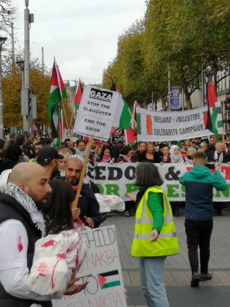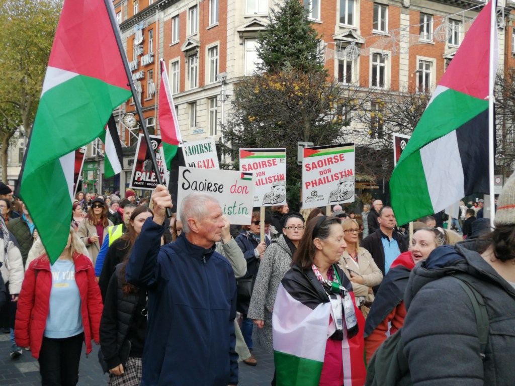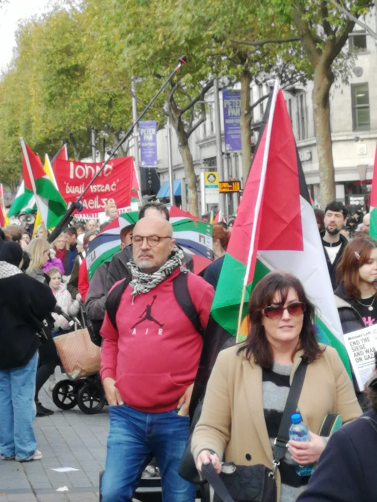 Many thousands wound their way in Palestine solidarity on Saturday through the streets of Dublin City centre, crossing from north to south of the river, filling the streets with solidarity slogans that have now become very familiar.