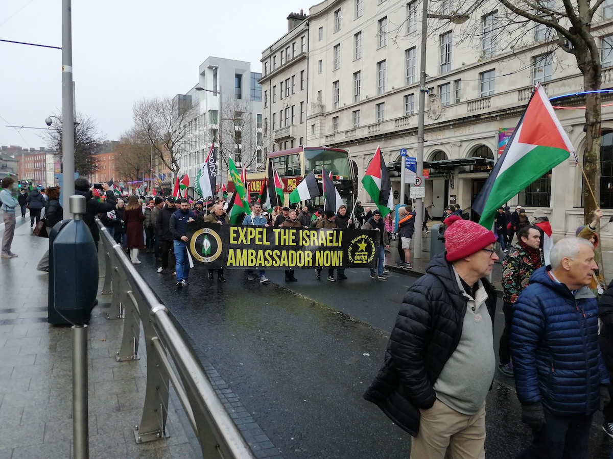 From Cork at the southern end of Ireland, from Tyrone and Belfast in the North, from Wicklow and Wexford in the South-east and from Galway in the West, groups and individuals had travelled to Dublin to participate in the nation’s statement of solidarity with the Palestinians.