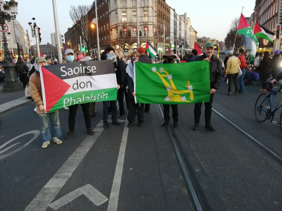 Although the last slogan might not be seen as specifically referring to Ireland, there was also one in the Irish language which is now common among native Irish and many of migrant background, Saoirse don Phalaistín! And the unequivocal From Ireland to Palestine – Occupation is a crime!