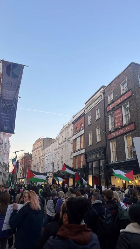 The protesters’ rage and frustration was lit by images of dead and injured Palestinian children in the return to genocidal bombing of Gaza by the ‘Israeli’ armed forces, once again violating their ceasefire agreement, along with besieging and ethnic cleansing of cities of the West Bank.