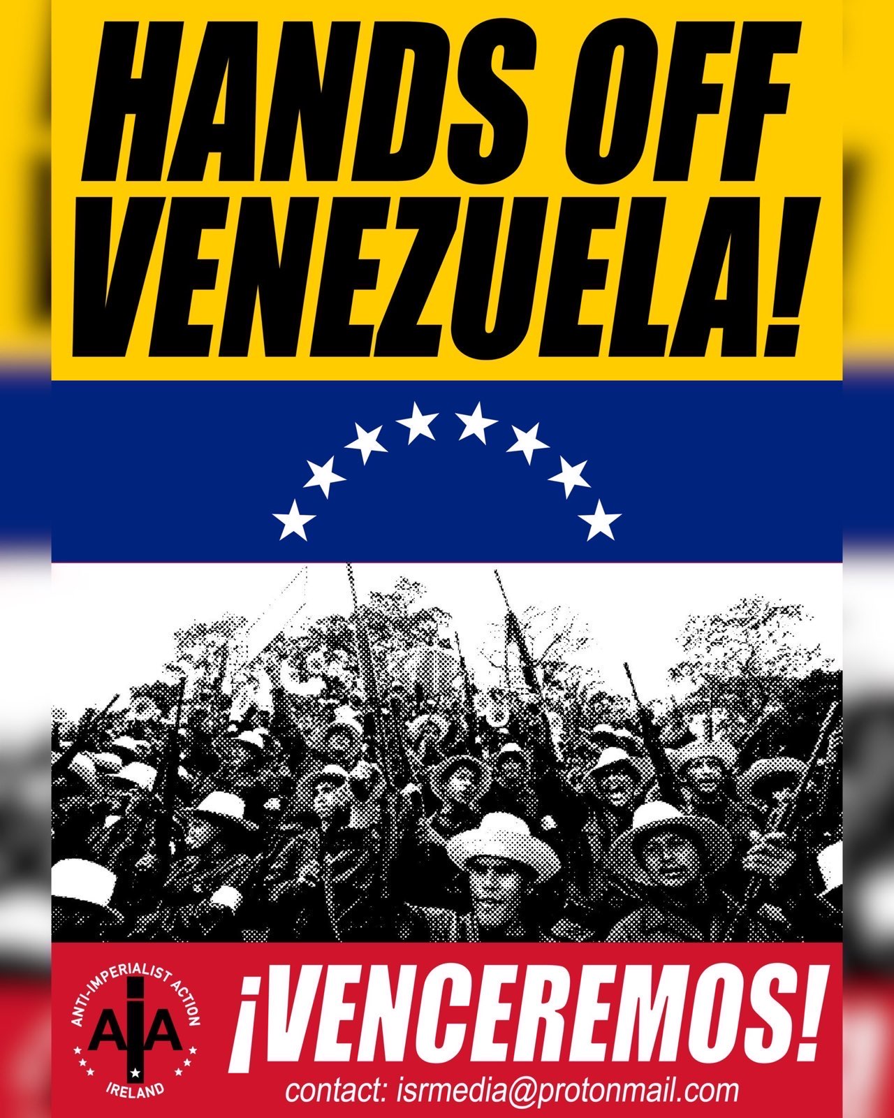 The well-known slogan of US military – Out of Shannon! was among the call-and-answer chants of course, along with the easily-imagined Hands off Venezuela! But there were some innovative ones too, such as the Irish-language/ English mix of Deirimís go léir le chéile – Hands off Venezuela!