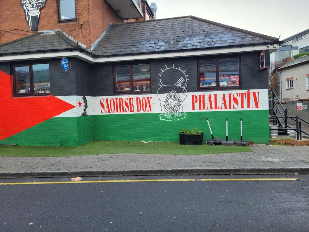 Last year officials in Dublin City Council sought unsuccessfully to have Peadar Dunne’s remove the large Palestine flag painted on the side of their building. It has a reputation not only as an Irish Republican pub but also of decidedly internationalist solidarity and antifascist character.