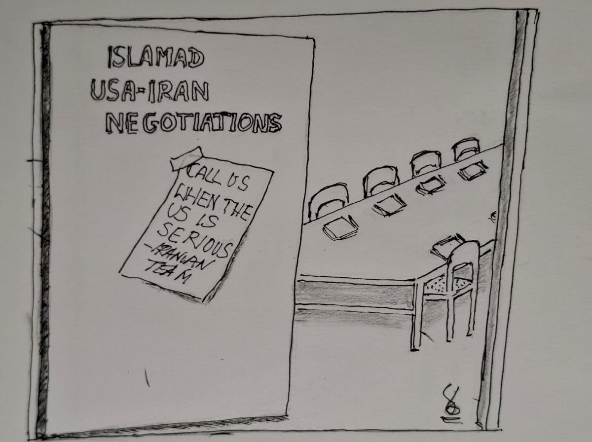 TRUMP DESPERATE FOR IRANIANS TO TALK BUT THEY DON’T SEE THE POINT DUE TO USA BEHAVIOUR On April 24, 2026 By rebelbreezeIn Cartoon comment, Current Affairs Comment, Imperialism, National Sovereignty, Satire Diarmuid Breatnach Share this: Share on X (Opens in new window) X Share on Facebook (Opens in new window) Facebook Like Loading... Related