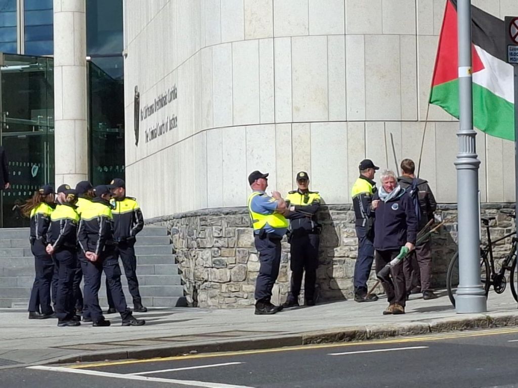 Pickets outside the Court of Criminal Justice in Dublin have been a regular feature in recent years, not only in support of Palestine solidarity activists but also anti-NATO protesters, housing activists and Irish Republicans (the latter being brought through the no-Jury Special Criminal Court).