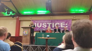 Unaware of her rights, she gave them that information. The Gardaí said they had not seen the man’s action, only that of the women pushing him along the Bridge. He claimed that the megaphone had been blaring in his ears but the suspicion is that he had been expressing his hostility to the cause.