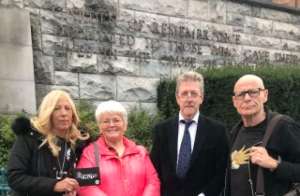 View further back of plaque to the three murdered by the British Occupation forces on Bloody Sunday 1920 (City Hall on the right). (Photo DB)
