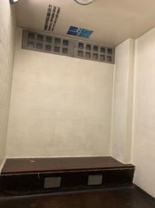 A dungeon cell in Paddington Green Metropolitan Police Station. Under the provisions of the “Prevention of Terrorism Act” (sic), Irish people were kept in cells like this for up to five days (sometimes longer) without access to solicitor, family or friends, interrogated and often brutalised. (Photo source: Protesters who occupied the empty building recently — go raibh maith agaibh!)