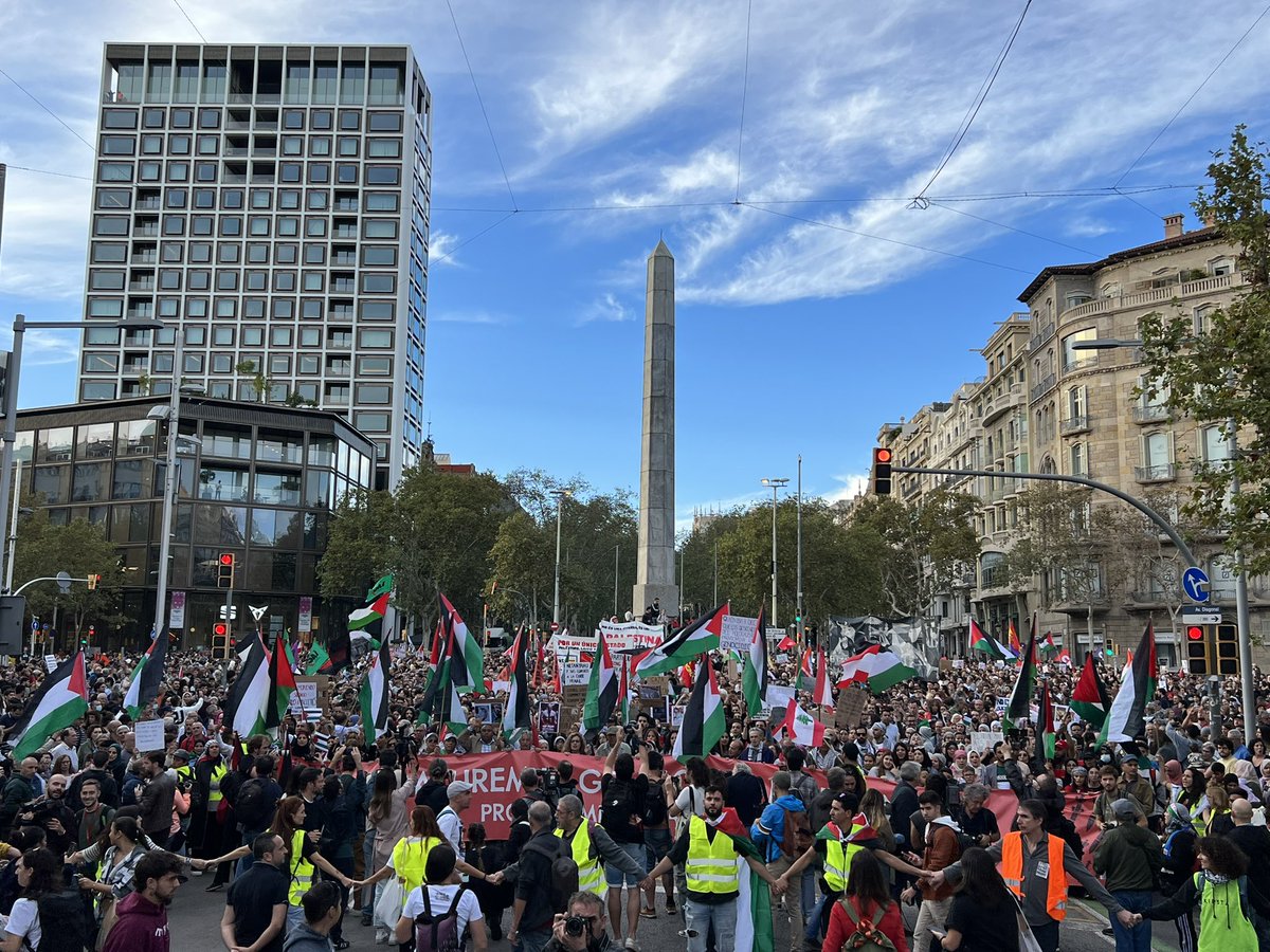 Thousands of people gathered this Saturday in Barcelona to defend the rights of the Palestinian people and to condemn the bombings and attacks by the State of Israel in the Gaza Strip.