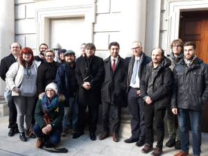 The “Global Spain” initiative of the Spanish State to 215 Spanish embassies and its sub-title “Touch Democracy” was presented to a small audience at the Instituto Cervantes in Dublin on Monday while Catalan and Basque solidarity demonstrators picketed outside.