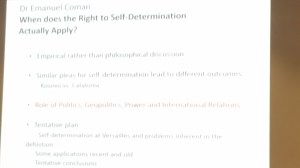 This was too much for at least one of the small audience, an Irishman who interrupted the concluding remarks of the Director by saying, in Castillian (Spanish) that it was a pity that the question of self-determination had not been discussed. The event was taking place in Ireland, he commented, where another state had denied the people the right to self-determination on grounds of that state’s constitution also. Denied permission to exercise their right, the Irish people had to fight for it and eventually won part-independence.