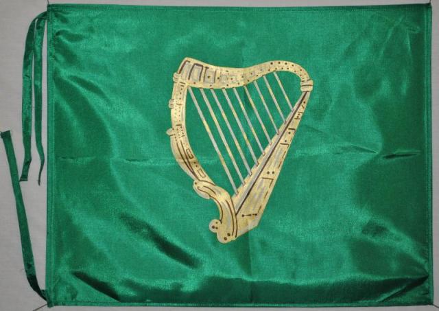 - El arpa de la bandera de los Irlandeses Unidos estaba más adornada y llevaba inscritas las palabras “Está recién encordada y se oirá”