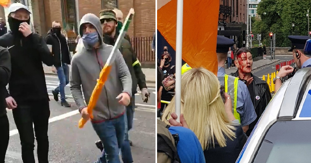 Participants in these and similar events wave the Irish Tricolour and Irish Republic flags and claim to be ‘Irish patriots’ standing up for ‘the Irish nation.’ However, it’s far from that they are in reality as we can see.
