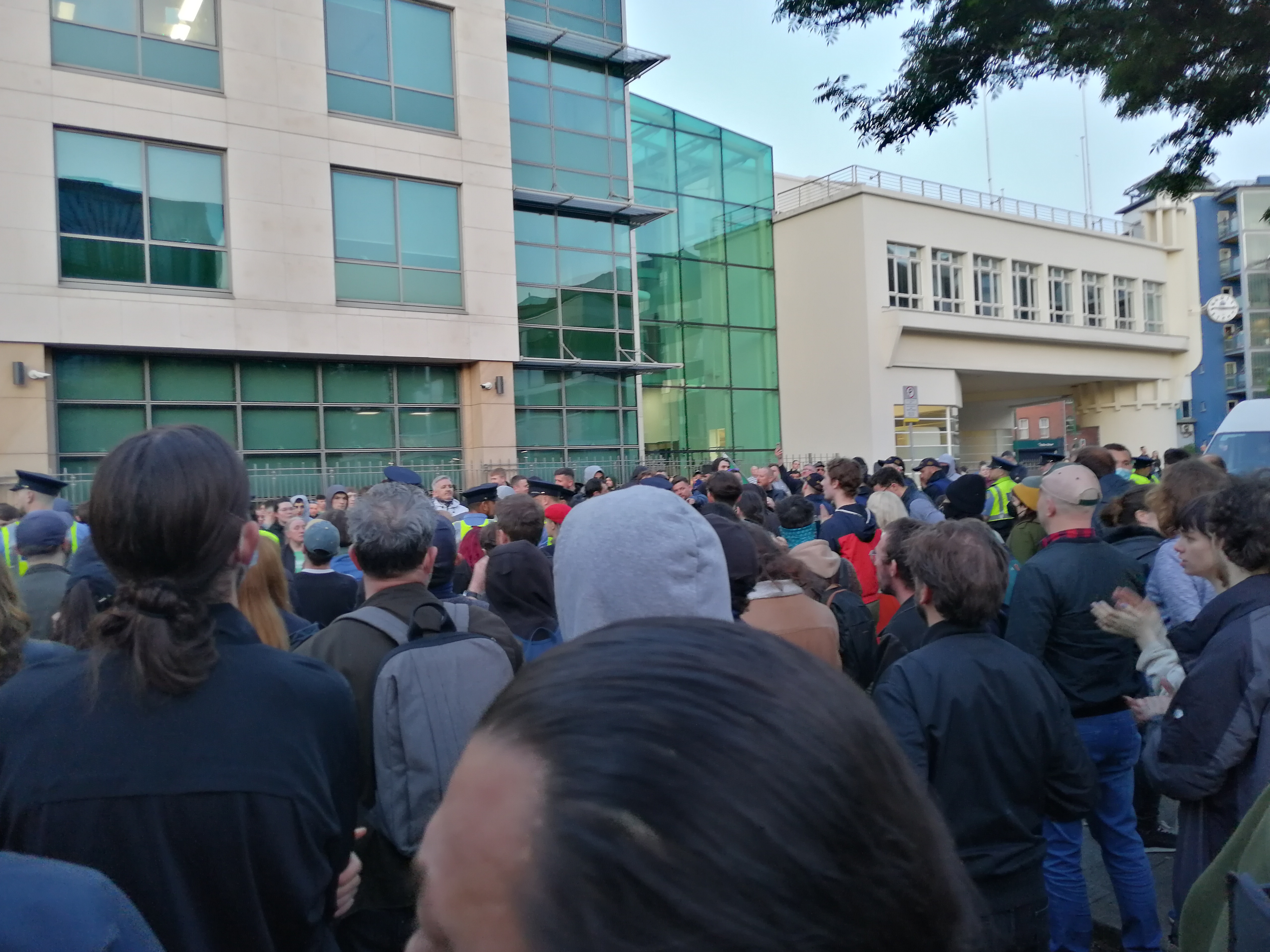 They have often held racist gatherings outside it; one of their organisers2 (e.g. of weekly protests during the Covid crisis) leading a chant of support for British fascist Tommy Robinson, who defended the Paratroopers who carried out the 1972 Bloody Sunday massacre in Derry.