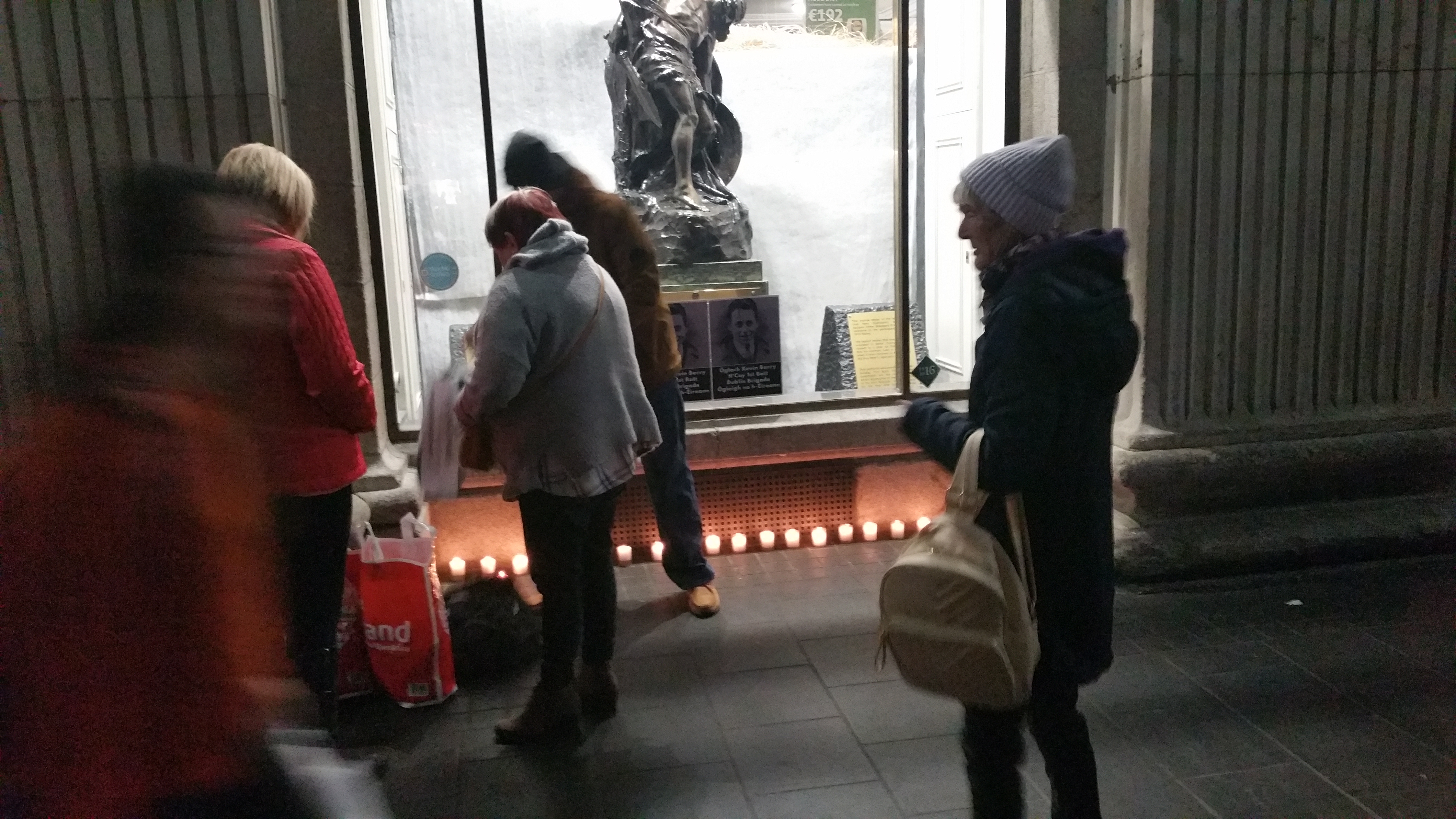 Display of images of Kevin Barry and lit candles outside the GPO at the event. (Photo: D.Breatnach)
