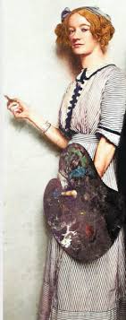 Grace Gifford (colourised) with paintbrush and easel (Source photo: Internet)